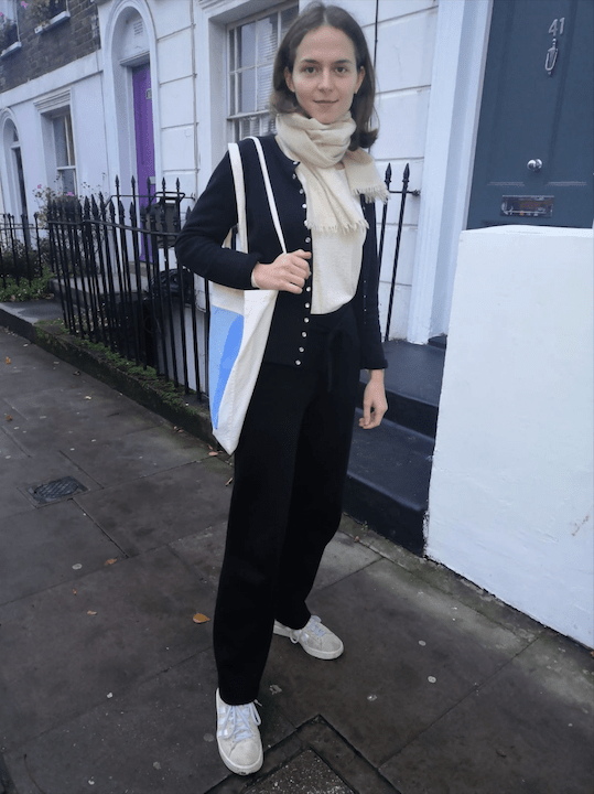 The first person is a French student living in London who describes her style as classic, minimalist and comfortable, her favorite thing to wear is premium loungewear which she mixes with urban elements such as trainers and artistic tote bags (image 11).